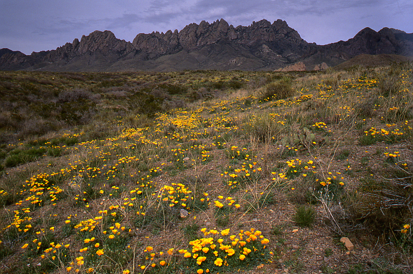 Organ Mountains with Mexican Gold Poppies and Clouds